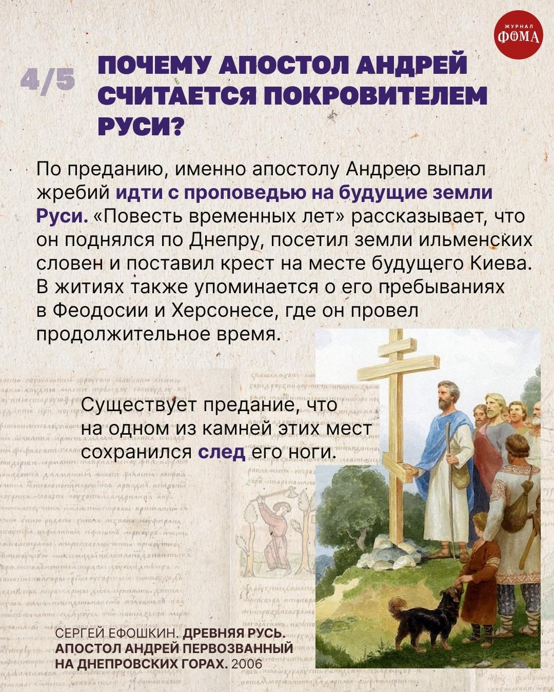 Предание связывает его проповедь с будущими русскими землями, поэтому он считается духовным покровителем Руси. Рассказываем, что нам известно о его жизни, подвиге и почитании. Листайте слайды