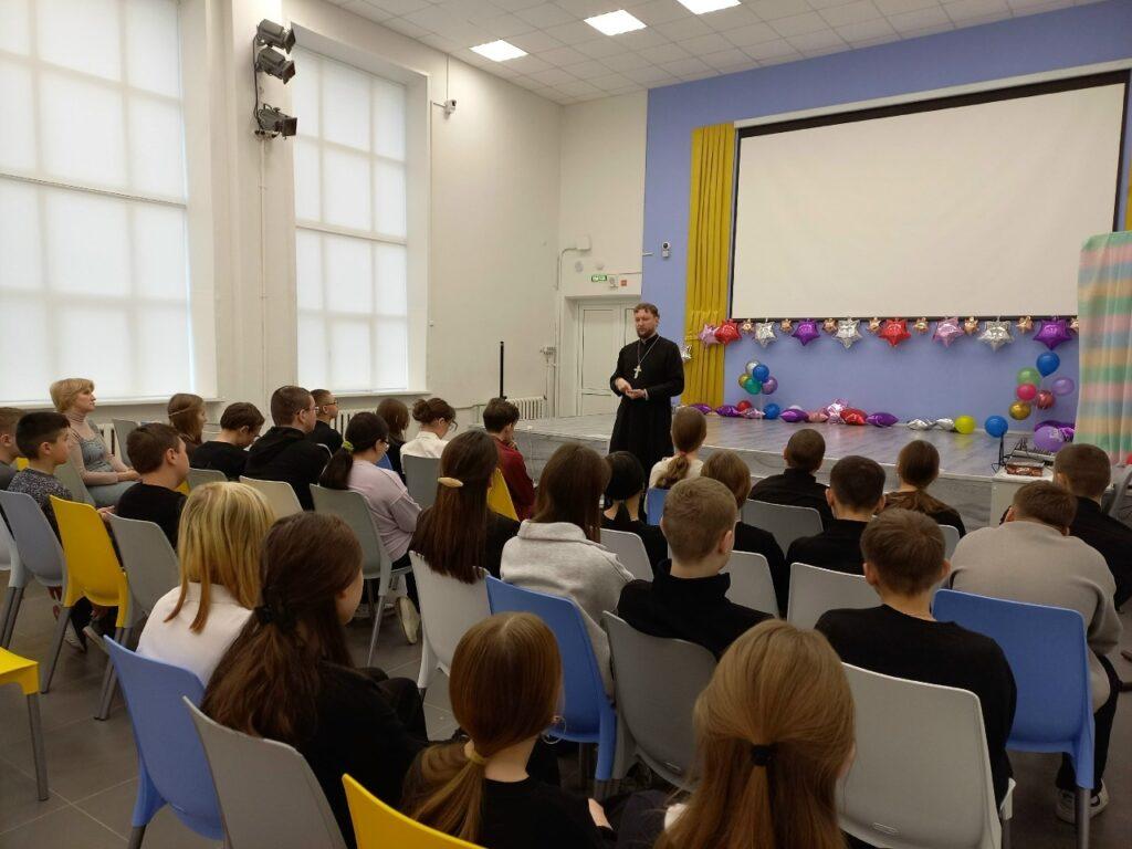 О.Алексей провел уроки в 7 и 8 классах на тему «Счастье», Татьяна Александровна провела уроки во 2, 3 и 5 классах на тему «Выбор добра». Уроки добра и нравственности приносят большую пользу для воспитания души. Учащиеся были активны. Задавали вопросы. Работали с таблицами: «Что такое добро и что такое зло», смотрели фильм «Выбор добра», в котором рассказывалось о жизни и подвиге преподобного Сергия Радонежского. Раскрашивали цветок добродетелей. На всех уроках дети трудились душой, после уроков благодарили и приглашали приехать снова. Так и сказали: «Будем вас ждать».
