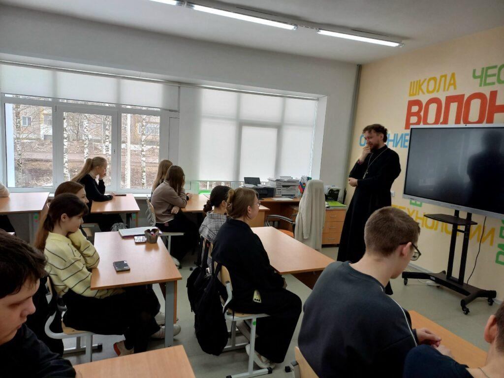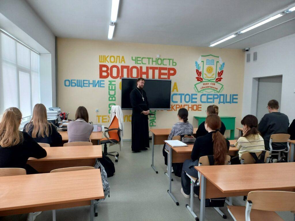 В школе п. Краснооктябрьский о. Алексей провел уроки в 8 и 10 классах на тему «Добро и зло, мой выбор», а Татьяна Александровна в 1 и 3 классах на тему «Православные праздники». В п. Вичевщина уроки были проведены в 6 и 3 классах. На всех уроках шел разговор о самом важном-нашей душе: о работе над собой, о грехах и добродетелях, о православных праздниках и традициях, о жизни святых людей и милости Божьей.