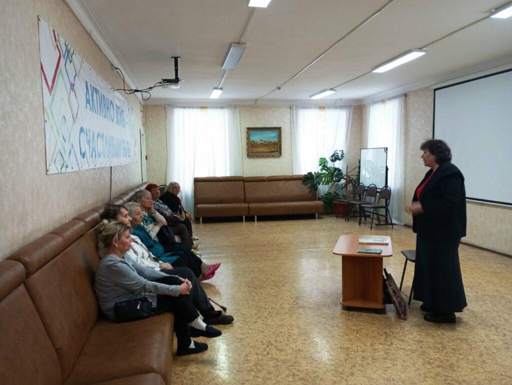 Со слушателями была проведена беседа на тему «О вере, подвиге святых и нашем правильном выборе». Татьяна Александровна рассказала о поисках человеком веры, о духовном выборе человека. Далее педагог познакомила слушателей с жизнью и подвигом святого преподобного Серафима Саровского. Также разговор шел о празднике Крещенья Господня, о его истории и традициях. Поговорили о том, как бороться с грехом и воспитывать в себе добродетели. К сожалению, духовная безграмотность до сих пор существует и людям очень необходимы такие встречи и беседы. Слушатели очень благодарили , задавали вопросы и пригласили в феврале снова посетить центр с духовной беседой о значимости Прощеного воскресенья и Великого поста.
