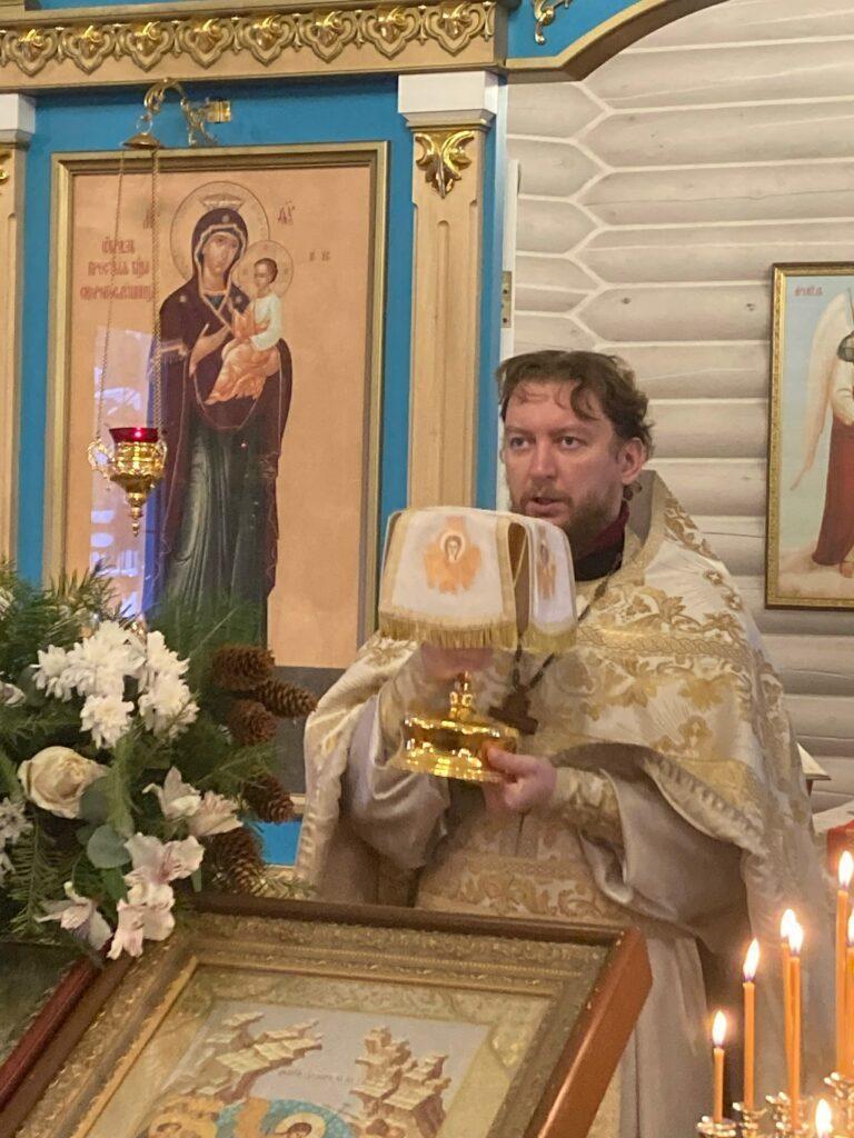 После окончания Литургии настоятель храма Алексей Шишкин поздравил всех Татьян с именинами и все прихожане дружно пропели «Многая лета». А затем Надежда Николаевна Новацкая от имени прихожан поздравила о. Алексея с Днем рождения.