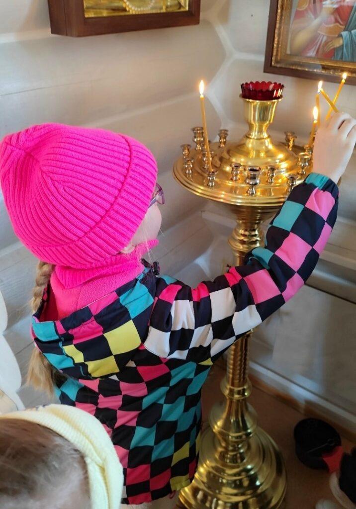 Дети поставили свечи святым со своим именем. Поинтересовались, где Икона Иисуса Христа, чтобы просто попросить прощения за свои маленькие шалости!