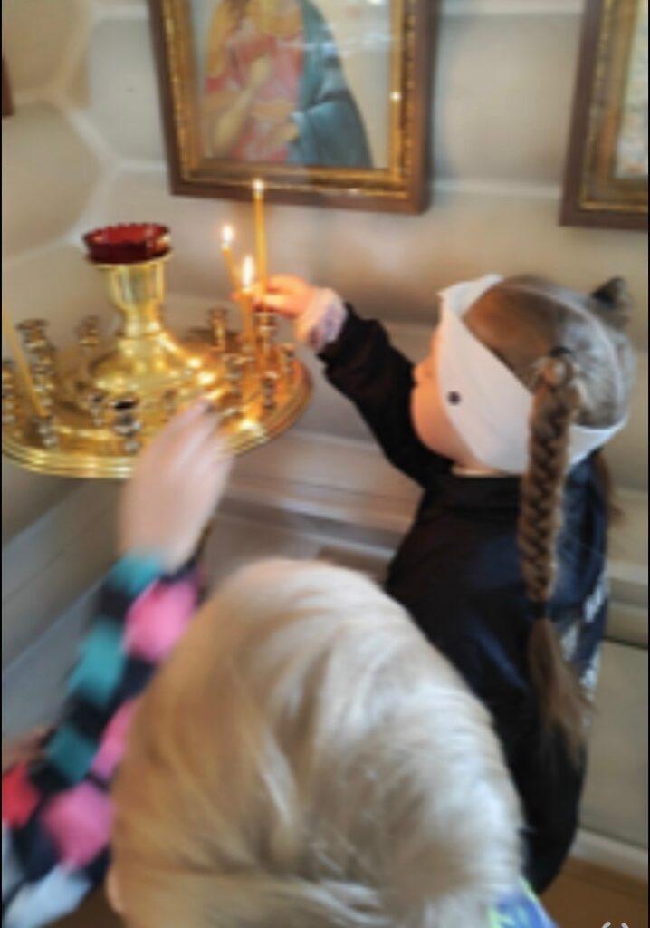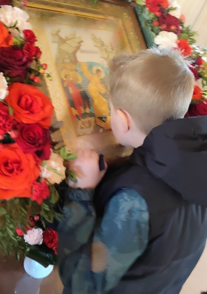 С интересом расспрашивали, кто изображен на иконах. Это очень важный момент в возрастании души детей — вспомнить о родителях и родных, помолиться об их благополучии!