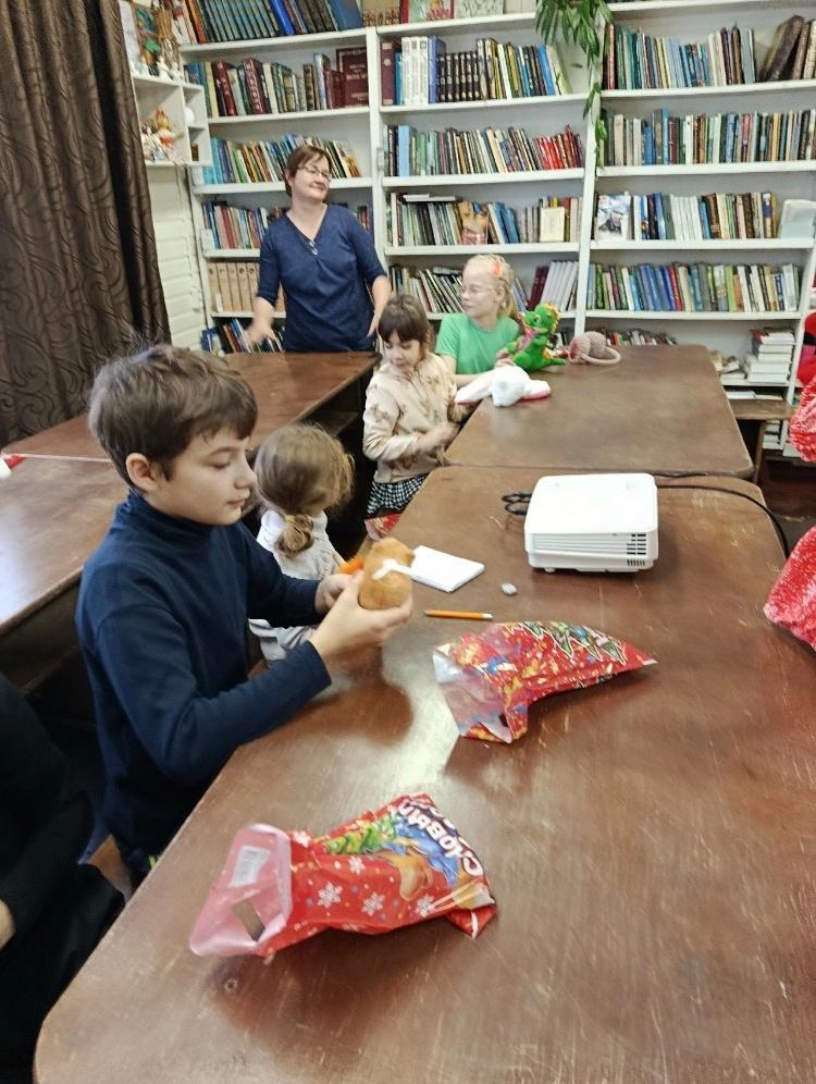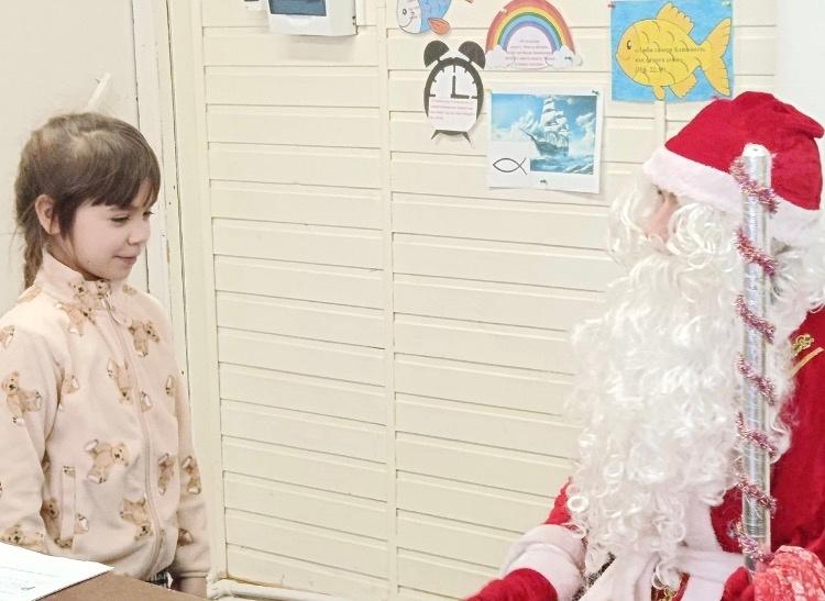 Занятие в детской воскресной школе началось необычно. К детям пришёл Дед Мороз! И, конечно, с подарками. Но прежде дети рассказали Деду Морозу стихи, а Коля Вараксин показал рисунок. Все были рады, особенно маленькая Анечка, ведь ей подарили весёлого Буратино!