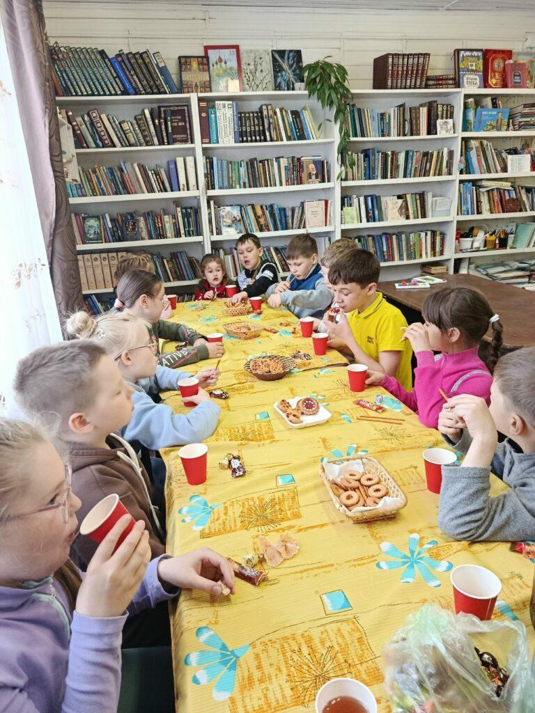 За чайной трапезой Ирина Вараксина прочитала детям Пасхальный рассказ.