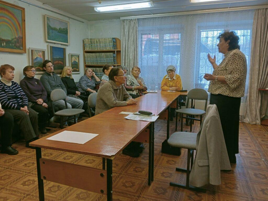 Татьяна Александровна провела для слушателей клуба «Вятская переправа» познавательную духовную беседу на тему «Радость прощения». А также рассказала слушателям о трех подготовительных неделях к Великому посту. Слушатели задавали много вопросов, особенно о Прощеном воскресении, о том, как научится прощать и не культивировать в себе обиду. В конце беседы педагог познакомила присутствующих. со своими новыми стихами.