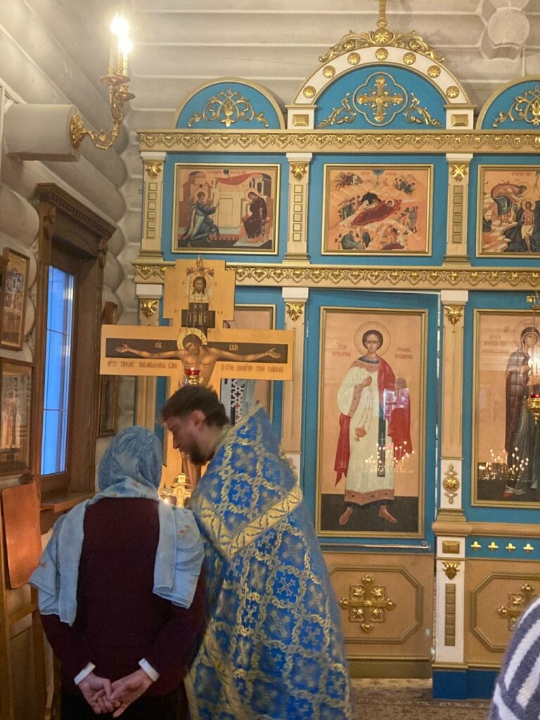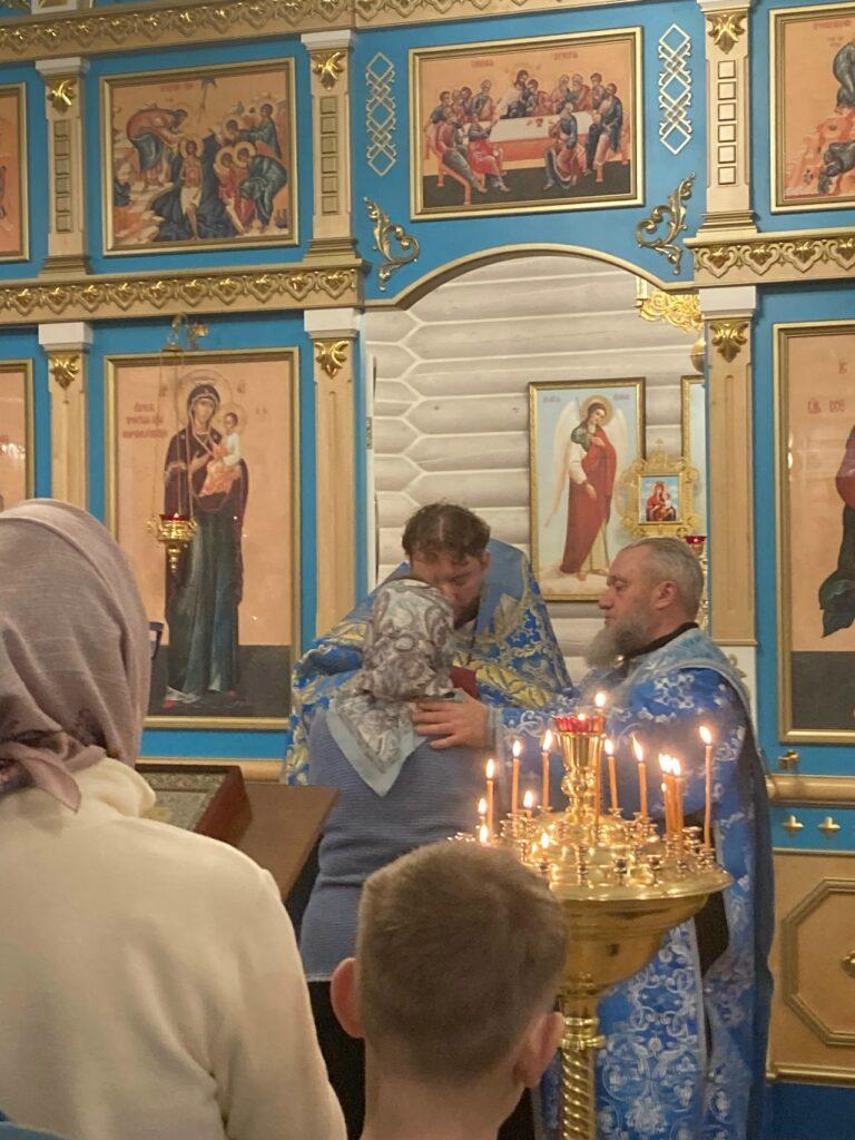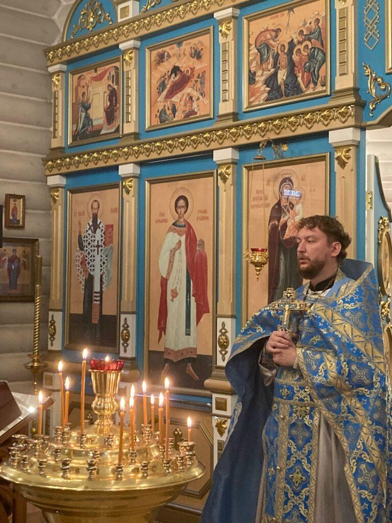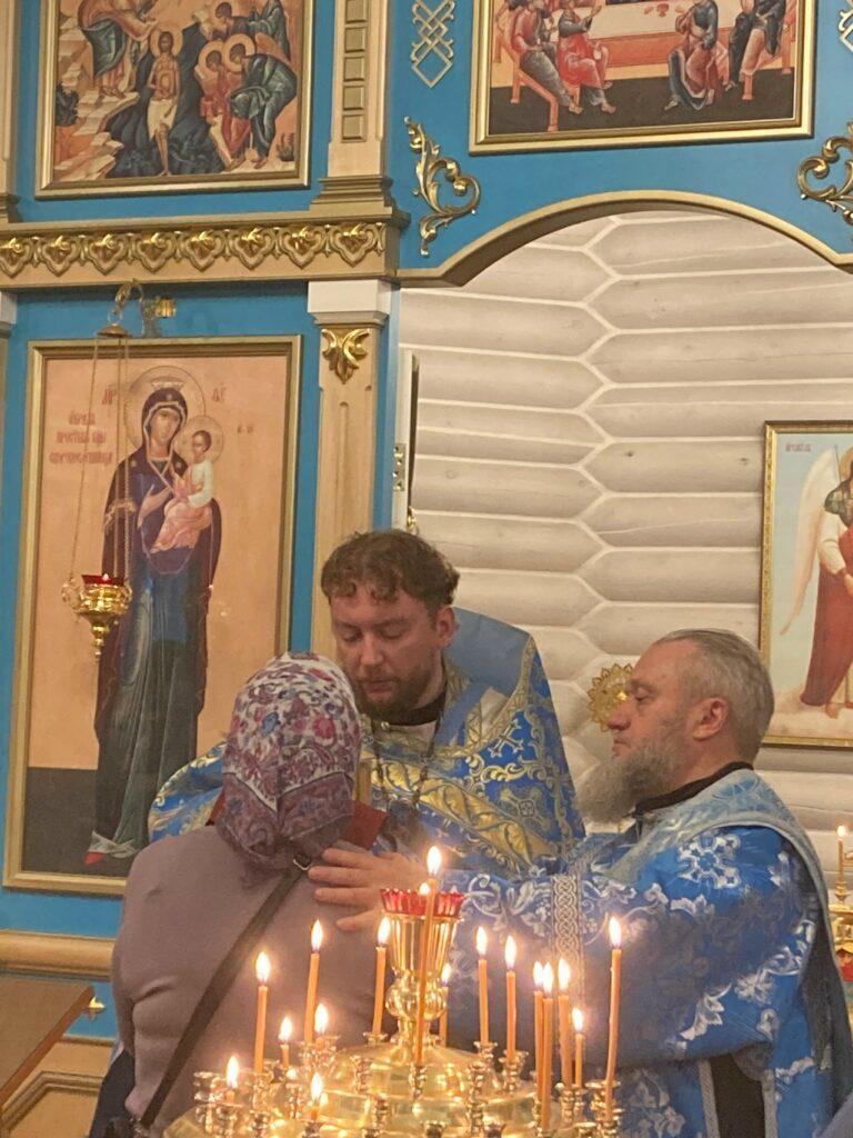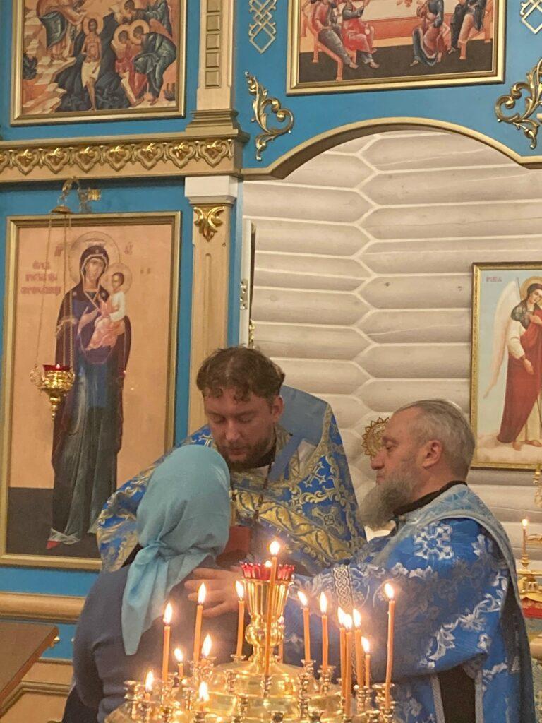 Засту́пнице усе́рдная, Ма́ти Го́спода Вы́шняго, за всех мо́лиши Сы́на Твоего́ Христа́ Бо́га на́шего, и всем твори́ши спасти́ся, в держа́вный Твой покро́в прибега́ющим. Всех нас заступи́, о Госпоже́ Цари́це и Влады́чице, и́же в напа́стех и в ско́рбех, и в боле́знех обремене́нных грехи́ мно́гими, предстоя́щих и моля́щихся Тебе́ умиле́нною душе́ю и сокруше́нным се́рдцем, пред пречи́стым Твои́м о́бразом со слеза́ми, и невозвра́тно наде́жду иму́щих на Тя, избавле́ния всех зол, всем поле́зная да́руй, и вся спаси́, Богоро́дице Де́во: Ты бо еси́ Боже́ственный покро́в рабо́м Твои́м.