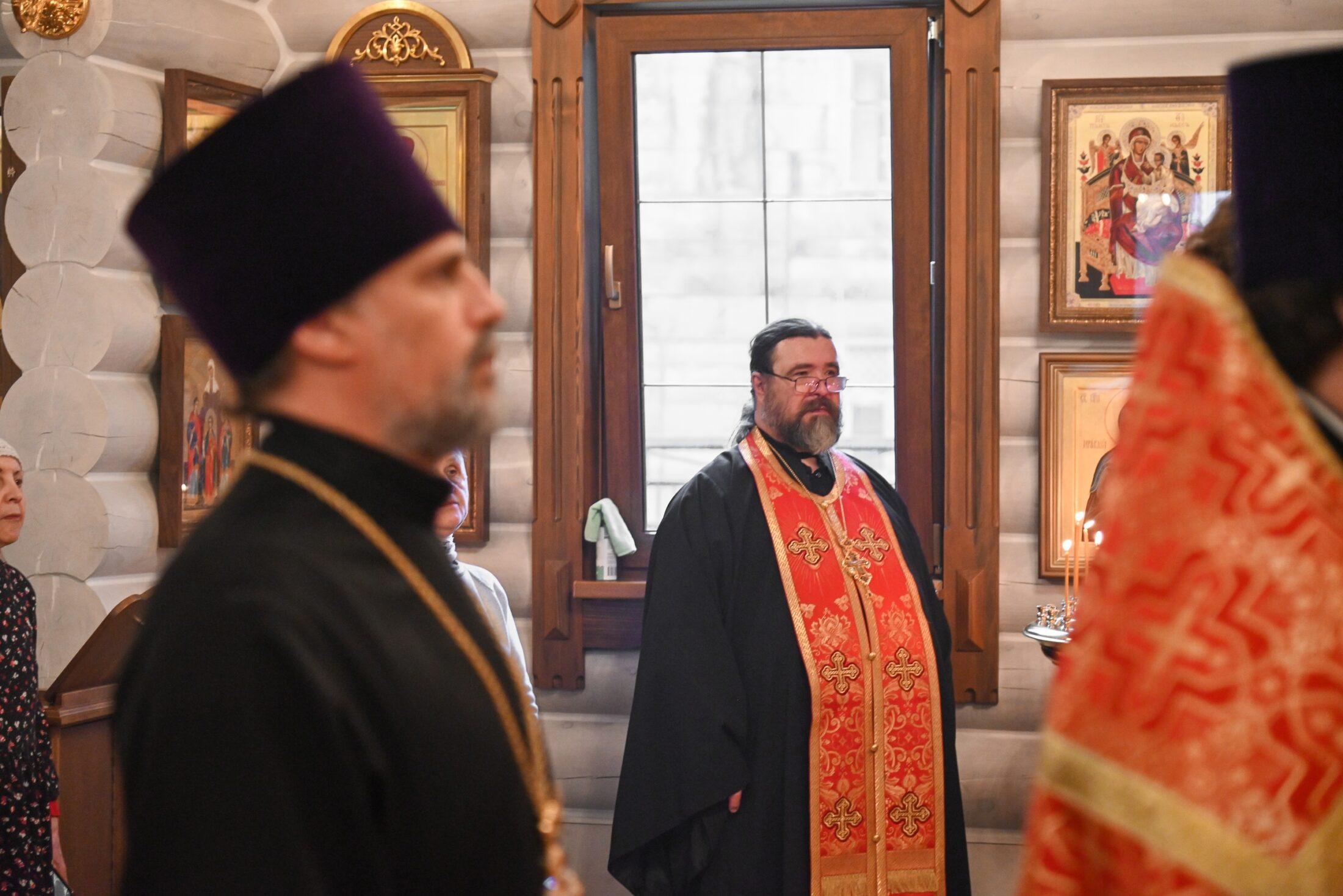 Богослужение возглавил митрополит Вятский и Слободской Марк. Его Высокопреосвященству сослужили секретарь Вятской Епархии иерей Виталий Лапшин, настоятель храма во имя иконы Божией Матери «Скоропослушница» иерей Алексей Шишкин, настоятель храма Михаила Архангела протоиерей Олег Филимонов. Исповедь принимал клирик храма протоиерей Андрей Зубарев.