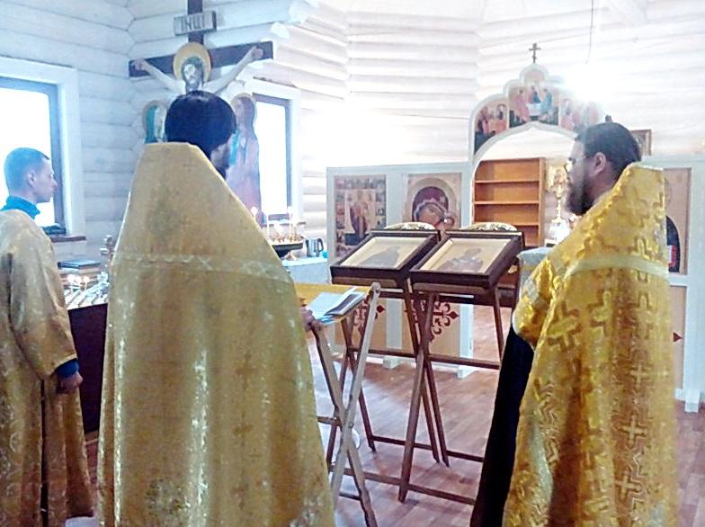 Богослужение совершил настоятель иерей Алексей Киторога в сослужении духовенства храма. После образы святых разместили справа от алтаря, напротив иконы «Скоропослушницы».